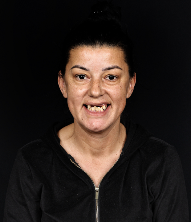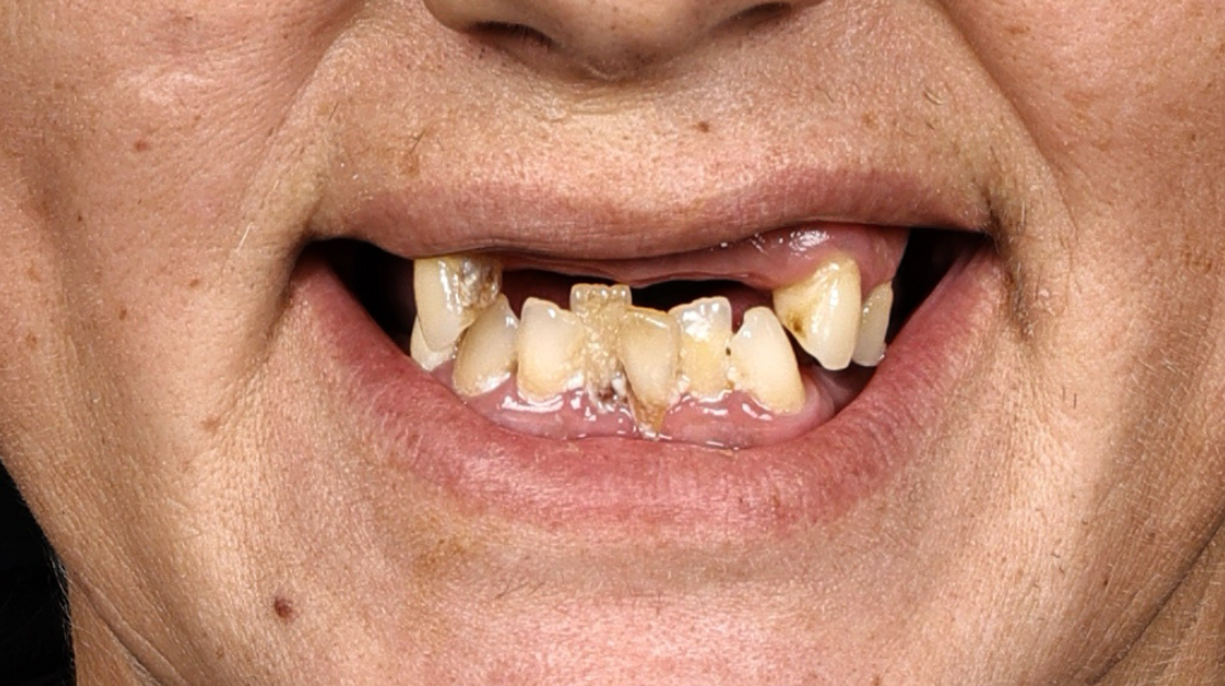 Antonija je u našu polikliniku došla tražeći najbolje rješenje za svoj dentalni problem. Zbog uznapredovalog parodontitisa, koji je bio djelomično genetski uvjetovan, izgubila je većinu zubi još u mladosti, dok su preostali zubi bili u stanju koje je zahtijevalo vađenje.